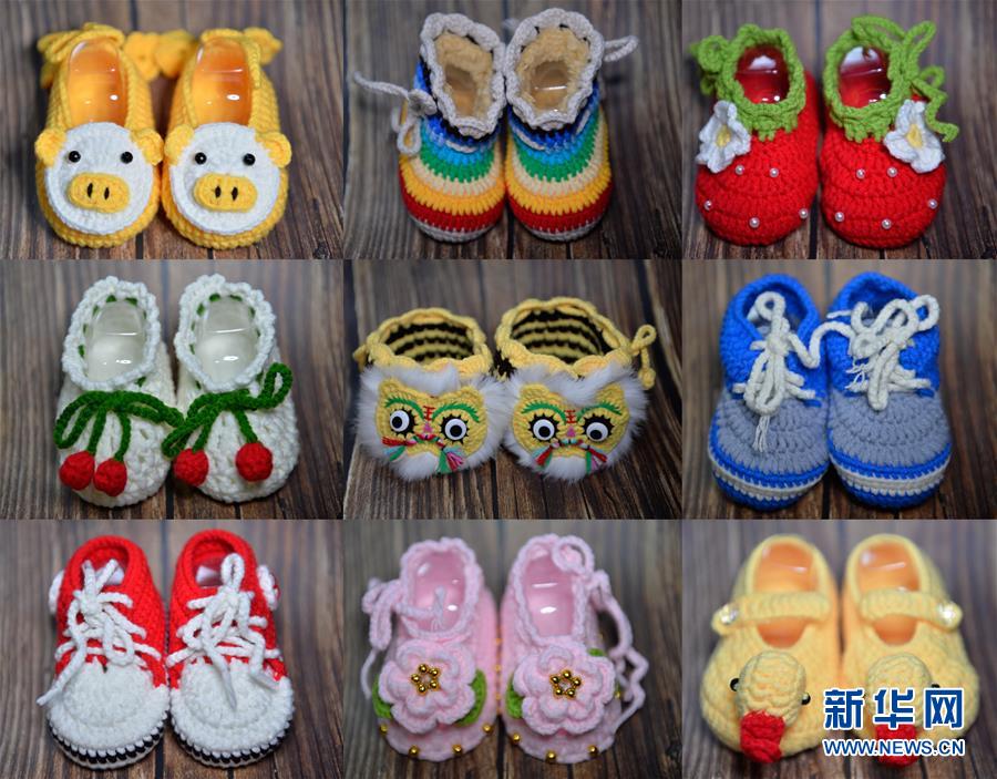 近年来,沙河市西毛村引导农村妇女学习手工编织毛线鞋,帮助她们实现家门口就业增收。这里制作的毛线鞋有生肖、卡通等图案造型数十个品种,通过电商网络销售到全国各地。 新华社发(陈雷 摄)
