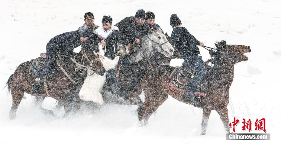 新疆伊宁县冰雪旅游活动上演刁羊、鹰猎比赛