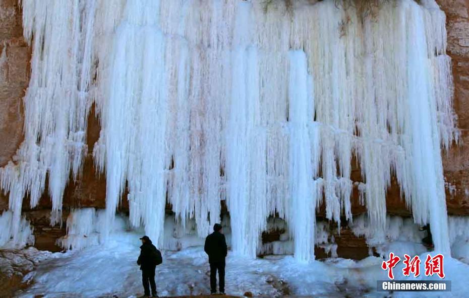 近日,甘肃白银市靖远县黄河虎豹口岸边宽300多米的山崖上,数十条高约15米左右,造型各异、色彩不同的冰瀑飞流直下。冬季,当地民众通过黄河岸边的提灌工程,将黄河水抽到坪上灌溉农田,多余的水通过山层砂岩渗出滴水成冰,顺势形成一条条冰挂和冰柱景观。张福昌 摄