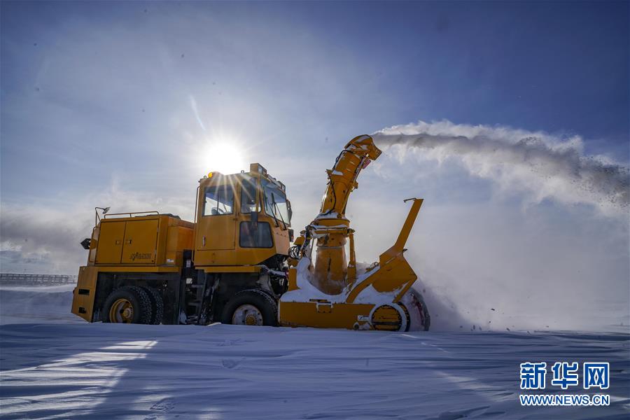 1月15日,新疆塔城公路管理局额敏分局玛依塔斯应急保障基地利用抛雪机清扫道路积雪。 玛依塔斯风区位于新疆西北部额敏县境内。这里东西风交替频繁,一年大风天数超过150天,是世界上罕见的暴风雪灾害地段。驻守在这里的新疆塔城公路管理局额敏分局玛依塔斯应急保障基地,近年来连续装备抛雪机等冰雪抢险救灾装备,有力地保障了这条道路的交通安全。 新华社记者赵戈摄