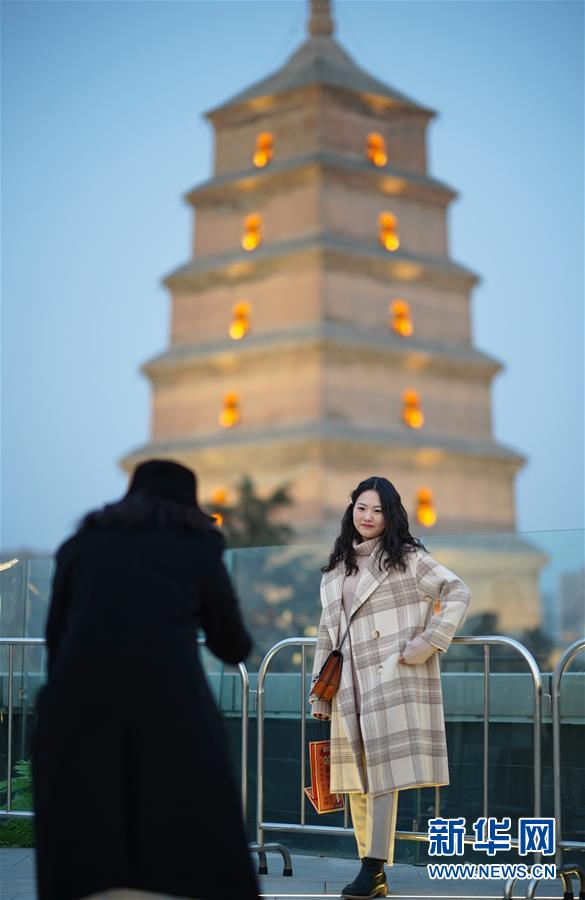 游客在大雁塔商圈一家商业综合体的观景平台上拍照(1月15日摄)。 随着时代发展,西安著名历史遗迹大雁塔的周边商圈也历经变迁。通过近年来的改造提升,大雁塔商圈如今焕然一新,新潮时尚的大型商业综合体和商业街区为古老的大雁塔注入了现代活力,也为来大雁塔游玩的游客提供了更好的旅游体验。 新华社记者 邵瑞 摄