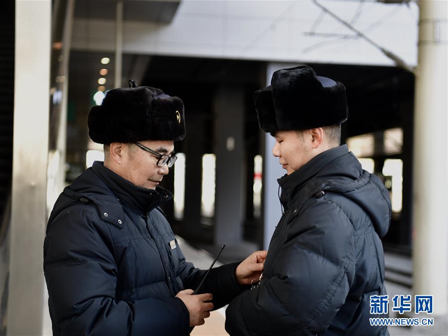 李海云是西宁站客运三班职工,在西宁站从事客运工作已经12年,他将于今年8月退休。2018年11月,他的儿子李诚从拉(萨)日(喀则)铁路曲水站调往西宁站工作,与父亲成了同一班组的同事。在班组,李诚也像其他同事一样称父亲为李师傅,父子俩一个守在车头,一个守在车尾,默默为乘客的回家路保驾护航。