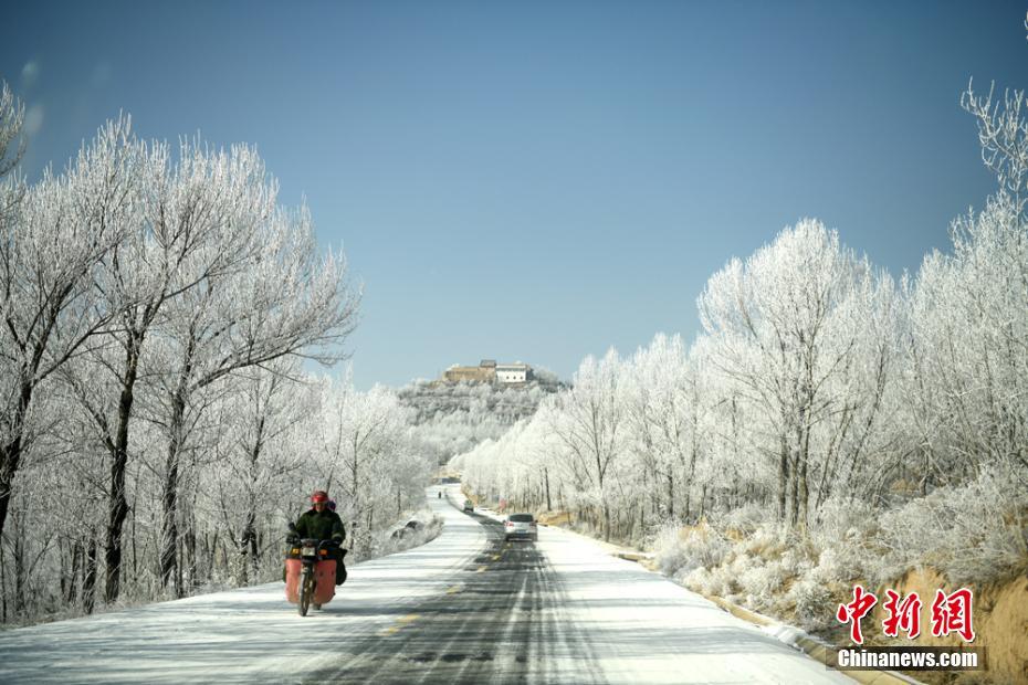 图为道路两旁,雾凇景观绵延数里。 王纲 摄
