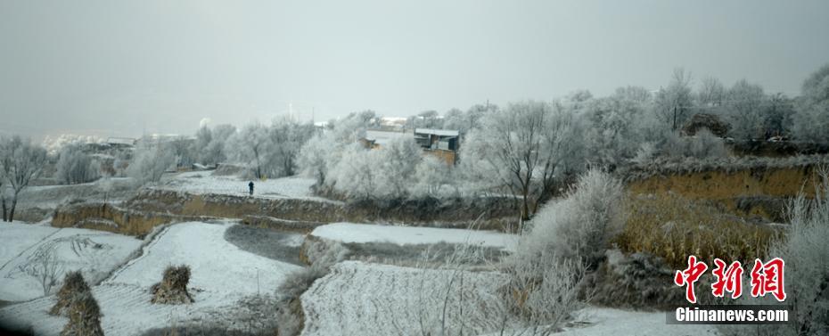 甘肃陇西雪后现雾凇 田野树林披“银装”