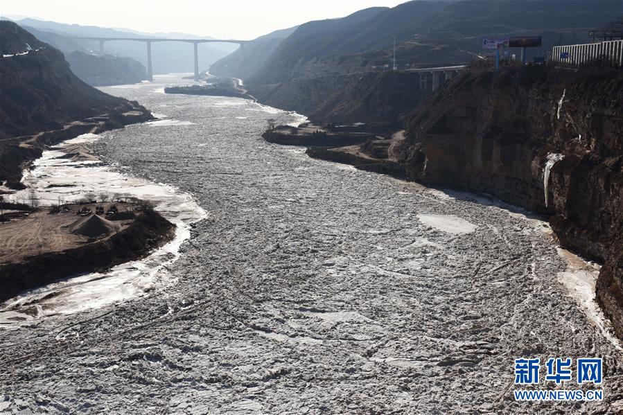 1月16日,黄河壶口瀑布下游十公里的河面全部封河。 新华社发(吕桂明 摄)