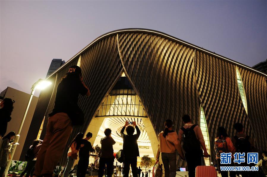 1月20日,行人在戏曲中心外观看拍摄。当日,香港首个戏曲文化表演艺术场地——戏曲中心正式开幕,已故国学大师饶宗颐生前亲笔题字“戏曲中心”亮相开幕仪式。戏曲中心是香港西九文化区第一座落成的表演艺术场地,作为区内主要艺术设施,中心致力于保育、推广和发展戏曲文化。新华社发(王申 摄)