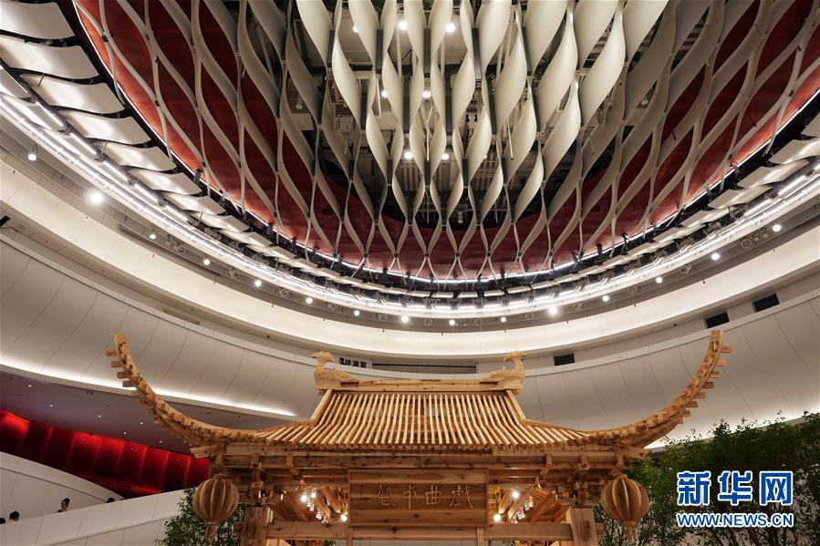 1月20日拍摄的戏曲中心内景。当日,香港首个戏曲文化表演艺术场地——戏曲中心正式开幕,已故国学大师饶宗颐生前亲笔题字“戏曲中心”亮相开幕仪式。戏曲中心是香港西九文化区第一座落成的表演艺术场地,作为区内主要艺术设施,中心致力于保育、推广和发展戏曲文化。新华社发(王申 摄)