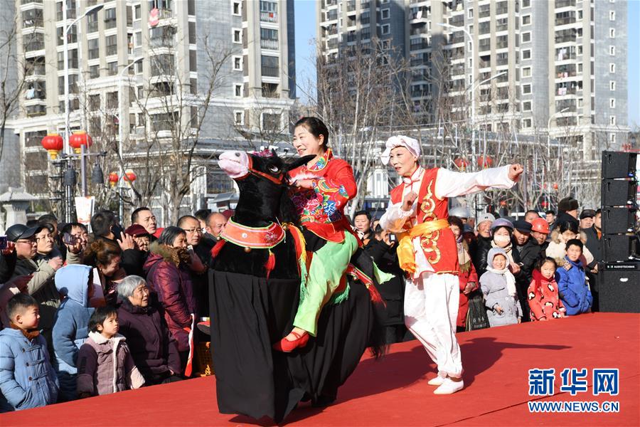 1月20日,在江苏宿迁市“项王故里”景区,民间艺人在民俗展演迎新春活动上表演闹花船。 新华社发(戚善成 摄)