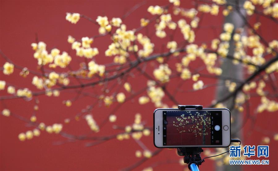 1月20日,市民在南京明孝陵景区拍摄腊梅。当日是二十四节气中的“大寒”,竞相绽放的腊梅带来春的气息。新华社发(刘建华 摄)