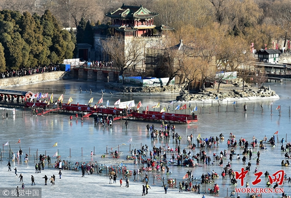 中工网讯 2019年1月20日,北京,颐和园昆明湖冰场大寒节气人气火爆。