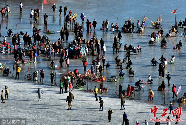 中工网讯 2019年1月20日,北京,颐和园昆明湖冰场大寒节气人气火爆。