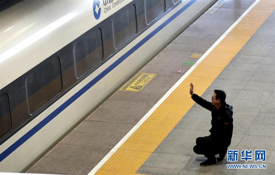 1月21日,在石家庄火车站,一名男子与家人挥手告别。当日,为期40天的2019年春运正式启动。 新华社发(梁子栋 摄)