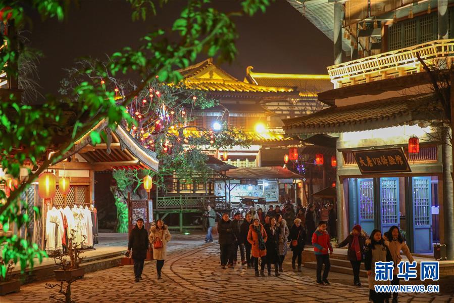 1月20日,游客在湖北省襄阳市唐城新春庙会上游玩。 新华社发(杨东 摄)