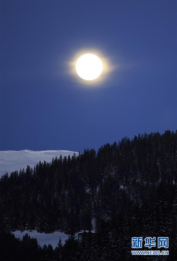 这是1月20日在瑞士达沃斯拍摄的满月。 1月21日迎来2019年第一个月圆之夜。 新华社记者徐金泉摄