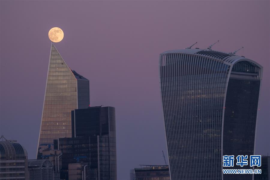这是1月20日在伦敦拍摄的满月。 1月21日迎来2019年第一个月圆之夜。 新华社发(史蒂芬·程摄)