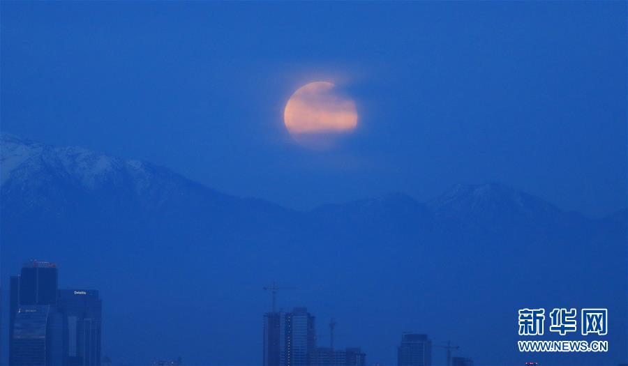 这是1月20日在美国洛杉矶拍摄的满月。 1月21日迎来2019年第一个月圆之夜。 新华社记者李颖摄