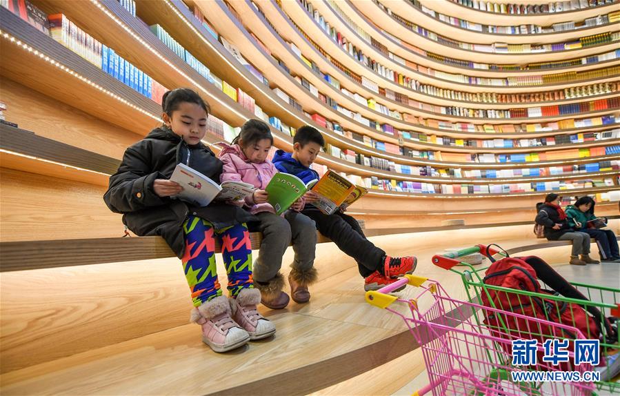 1月21日,孩子们在青城·阅立方图书阅读广场阅读。新华社记者 彭源 摄