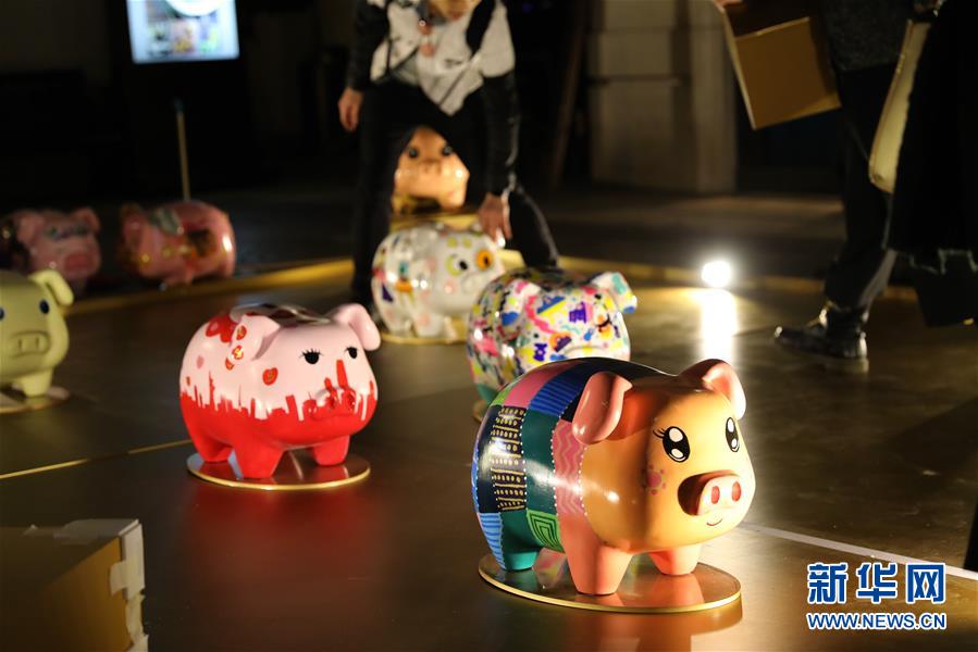 香港街头布置的一处小猪吉祥物展(1月23日摄)。 农历猪年临近,香港街头装扮得流光溢彩,喜气盈盈。 新华社记者 吴晓初 摄