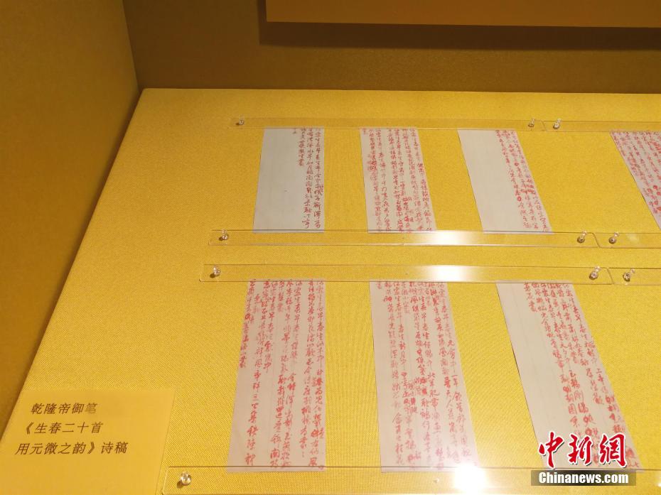 北京故宫举办“贺岁迎祥——紫禁城里过大年”活动,内容丰富吸引游客。图为1月23日,午门展览大厅中展出的清乾隆帝御笔《生春二十首用元微之韵诗稿》。中新社记者 关向东 摄