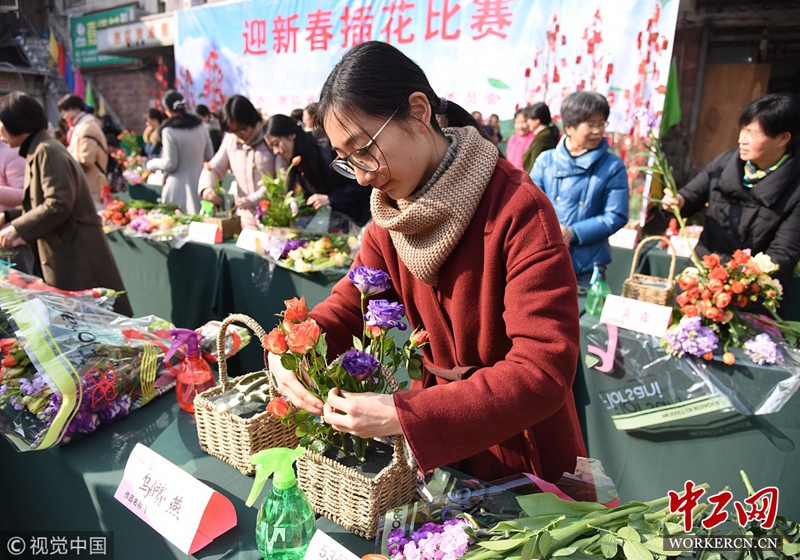 2019年1月24日,杭州,一年一次的“年宵花节”在凤起花鸟城开幕,现场上演插画大比武。(图片来源:视觉中国)