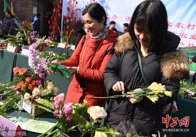 杭州:年宵花节开幕 现场上演插花大比武