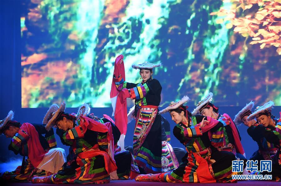 1月24日,演员在表演舞蹈《迭山情韵》。 当日,由甘肃省委宣传部、甘肃省文化和旅游厅主办的春绿陇原文艺展演——民族歌舞《香巴拉之约》在位于兰州市的甘肃省人民政府礼堂上演。 新华社记者 范培珅 摄