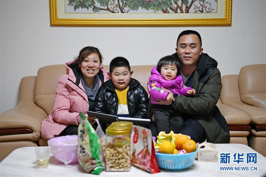 1月22日,李小华和妻子、儿女在韶关家中合影。这次回家之后,他要等到大年初二才能再回家跟家人团聚一天。 新华社记者 梁旭 摄