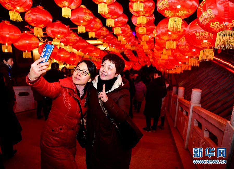 1月25日,游客在2019年陕州地坑院主题文化灯会欣赏花灯。 1月25日晚,2019年陕州地坑院主题文化灯会正式亮灯。在河南省三门峡市陕州地坑院主会场,共布设96组灯组,将传统彩灯与现代光源相结合,突出陕州地坑院文化元素和猪年生肖元素,彰显当地民俗文化,为游客带来了一场视觉享受。 新华社记者 李嘉南 摄