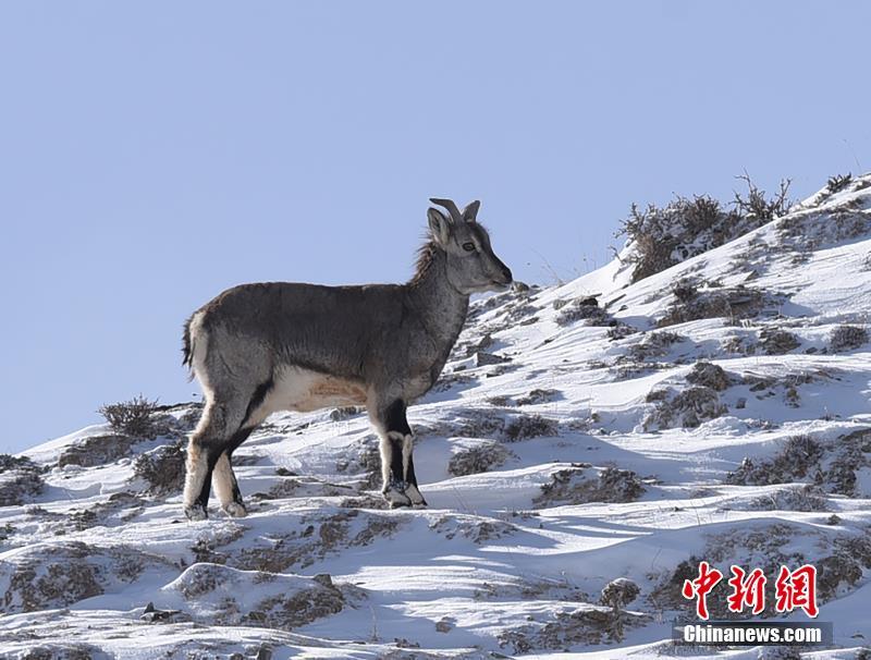 甘肃阿克塞百余只“岩壁精灵”雪中觅食