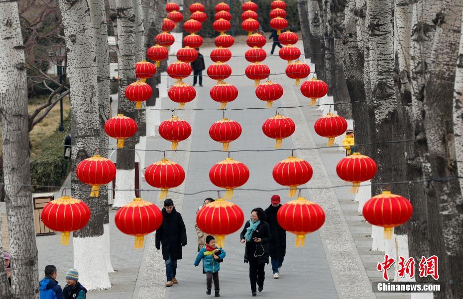 图为玉渊潭公园里张灯结彩,体现“年韵”迎春。中新社记者 杜洋 摄
