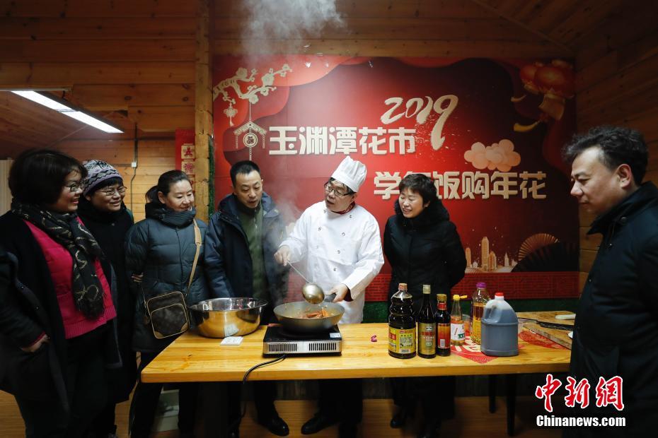 图为公园特别邀请民间厨艺达人刘宗群现场教做年饭,推出特色年饭油焖大虾、糖醋排骨等菜品传统制做手艺。厨艺传授现场吸引了众多游客驻足学习。中新社记者 杜洋 摄