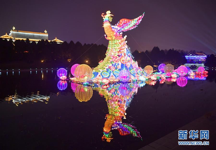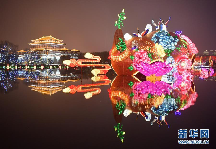 这是大唐芙蓉园新春灯会上展出的花灯(1月28日摄)。 1月28日,2019年西安大唐芙蓉园第七届新春灯会开幕。本届新春灯会以“灯影芙蓉夜·人间小团圆”为主题,灯组分为盛世大唐、互动童趣、民俗非遗、新春年味、水上灯组5个板块,营造出浓郁的春节氛围,吸引众多市民游客前来参观。 新华社记者 邵瑞 摄