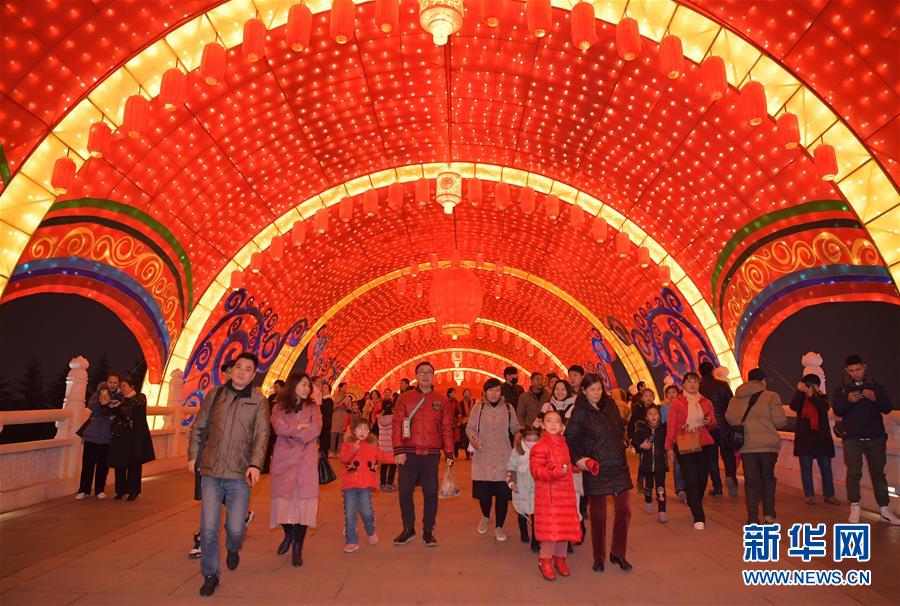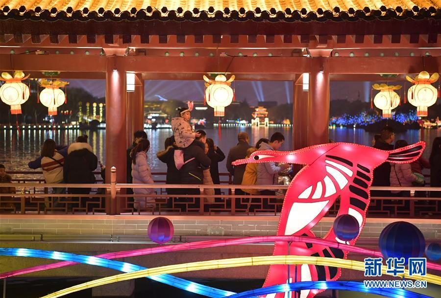 1月28日,观众在大唐芙蓉园新春灯会上参观。 1月28日,2019年西安大唐芙蓉园第七届新春灯会开幕。本届新春灯会以“灯影芙蓉夜·人间小团圆”为主题,灯组分为盛世大唐、互动童趣、民俗非遗、新春年味、水上灯组5个板块,营造出浓郁的春节氛围,吸引众多市民游客前来参观。 新华社记者 邵瑞 摄