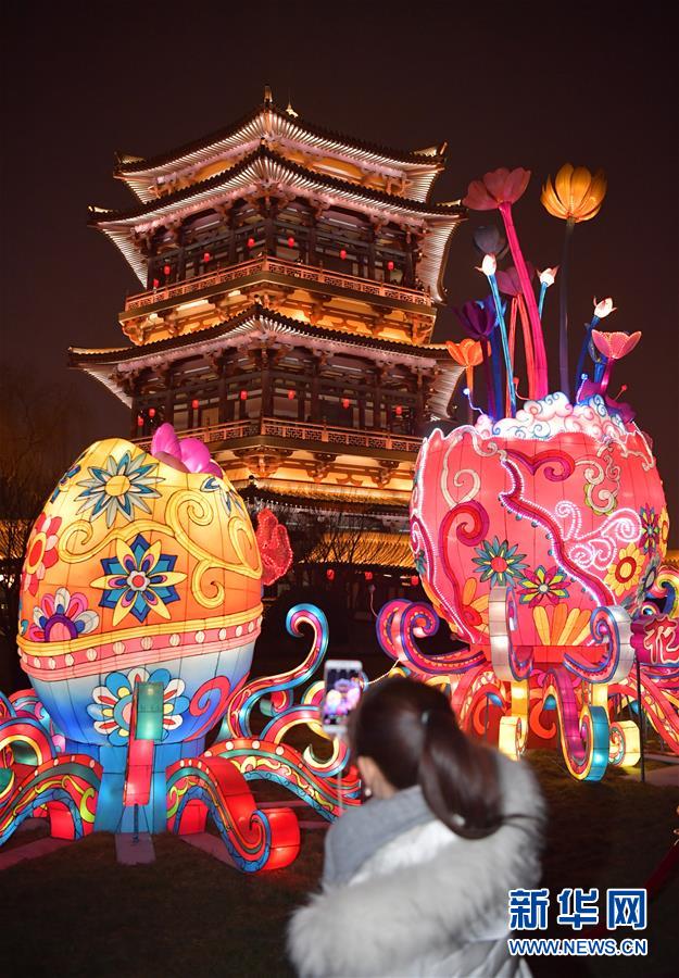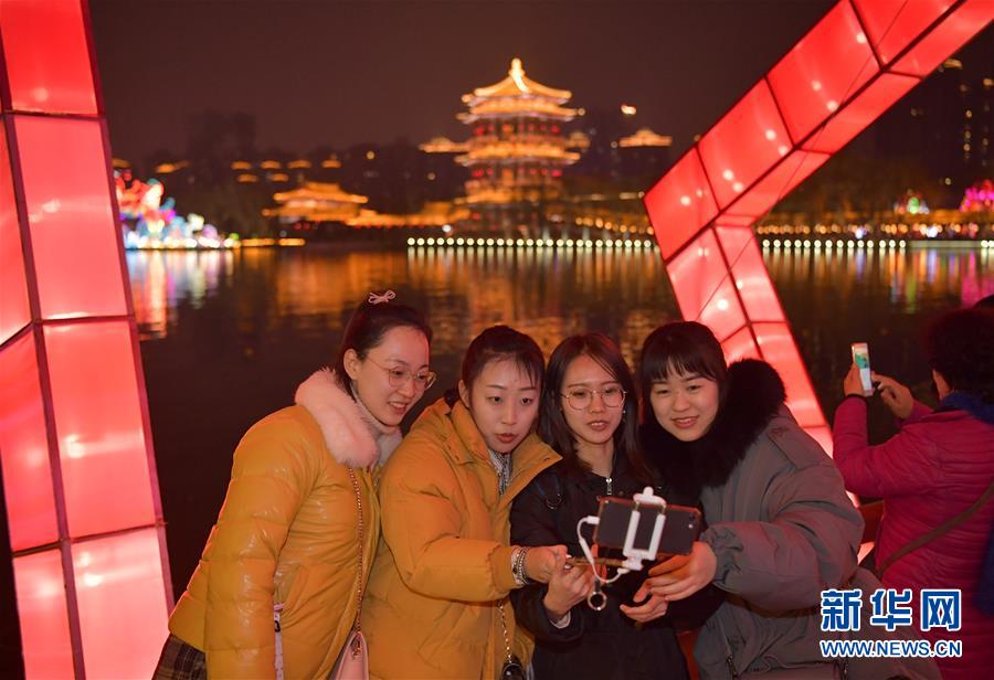 1月28日,观众在大唐芙蓉园新春灯会上自拍。 1月28日,2019年西安大唐芙蓉园第七届新春灯会开幕。本届新春灯会以“灯影芙蓉夜·人间小团圆”为主题,灯组分为盛世大唐、互动童趣、民俗非遗、新春年味、水上灯组5个板块,营造出浓郁的春节氛围,吸引众多市民游客前来参观。 新华社记者 邵瑞 摄