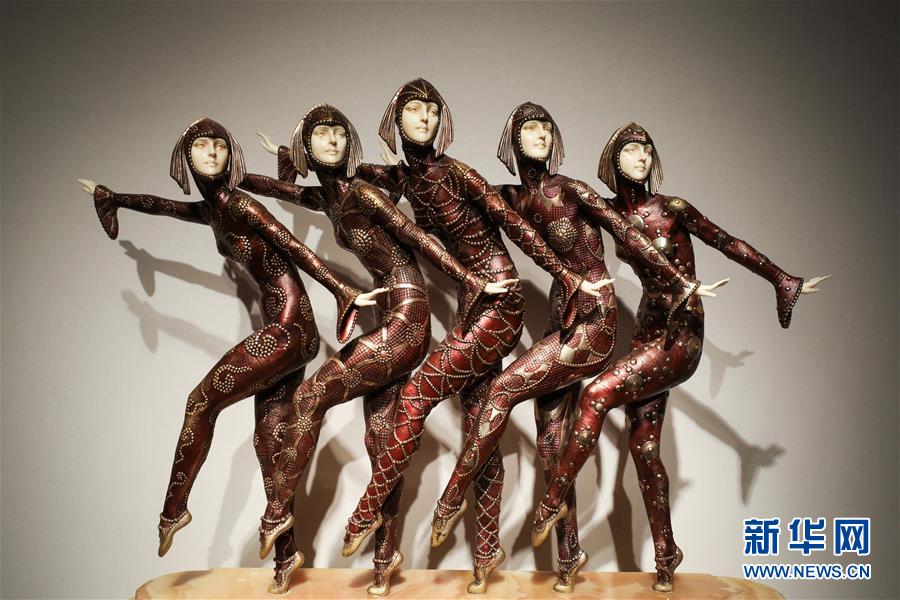 这是1月28日在比利时布鲁塞尔古董艺术博览会上拍摄的雕塑作品《女孩们》。
