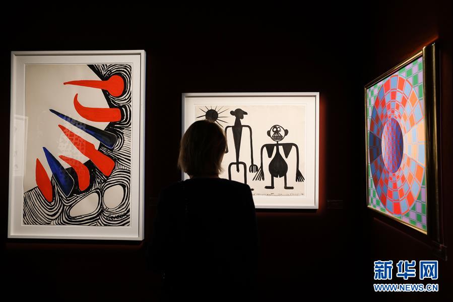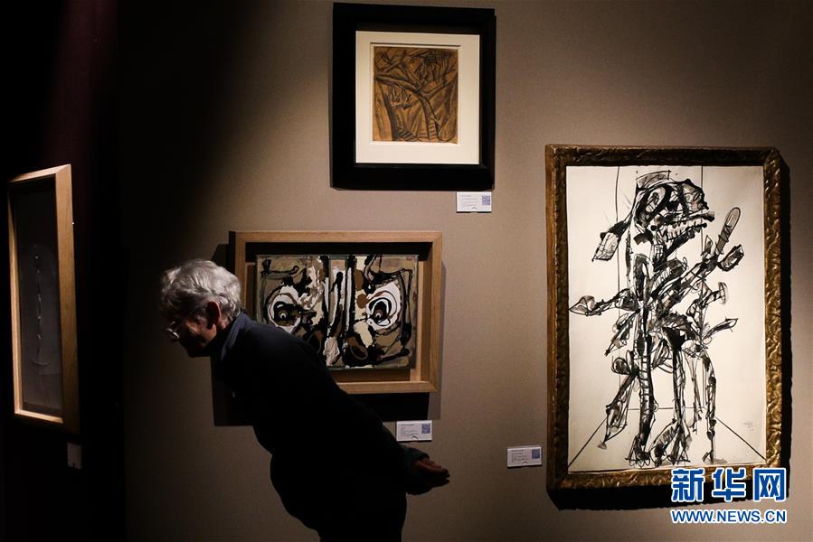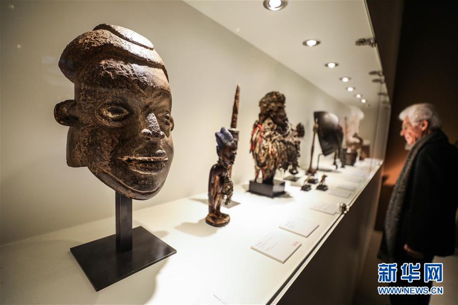 1月28日,参观者在比利时布鲁塞尔古董艺术博览会上观看艺术展品。