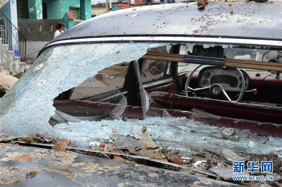 这是1月28日在古巴首都哈瓦那雷格拉区拍摄的受损车辆。 新华社发(华金·埃尔南德斯摄)