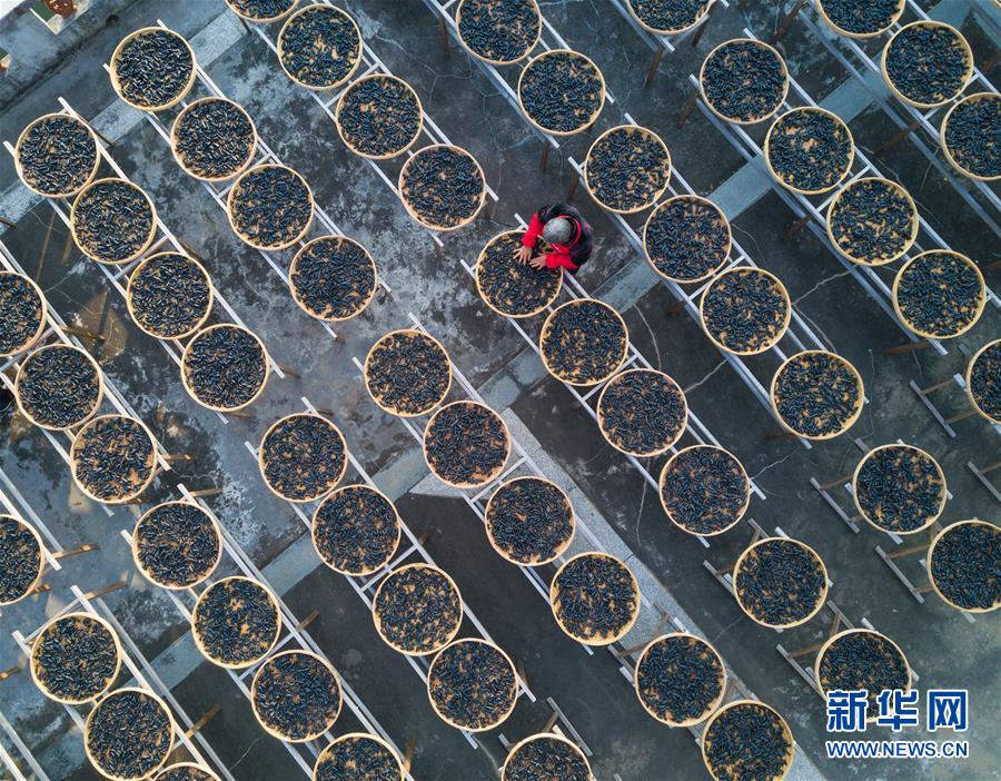在福建省永春县岵山镇茂霞村熟地文创园,村民在晾晒用当地传统手艺制作的药材——熟地(1月28日无人机拍摄)。 近年来,地处山区的福建省泉州市永春县把美丽乡村建设作为实施乡村振兴战略的有效抓手,根据不同村落的产业基础和特色,注重差异化产业植入、培育和发展,在装扮“外在美”的同时经营“内在美”,表里兼治,打造“繁荣、宜居、魅力、幸福、富裕、活力”的升级版美丽乡村。 新华社记者 宋为伟 摄