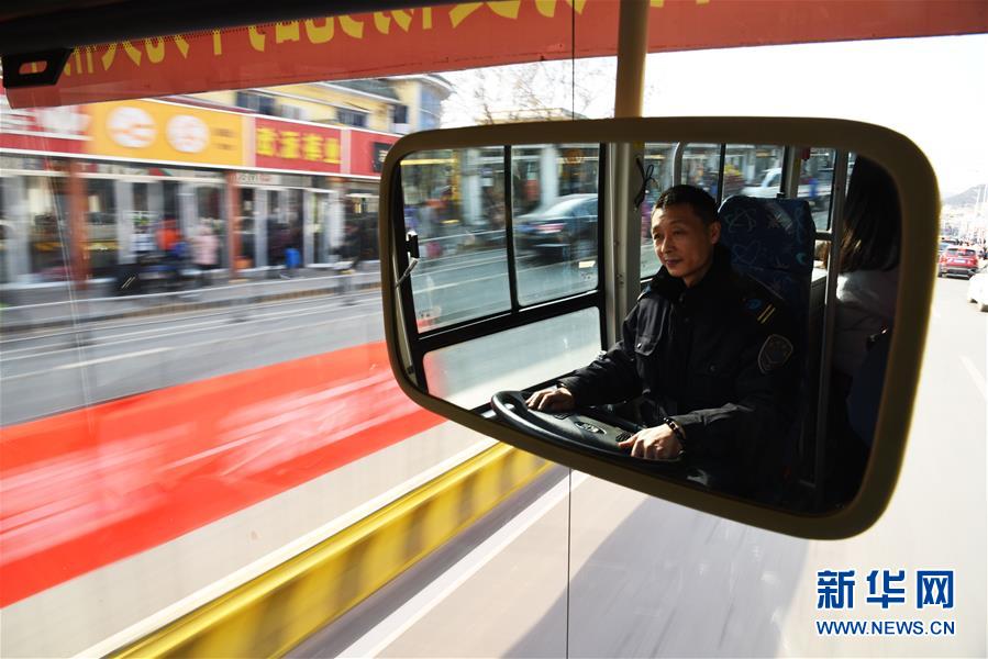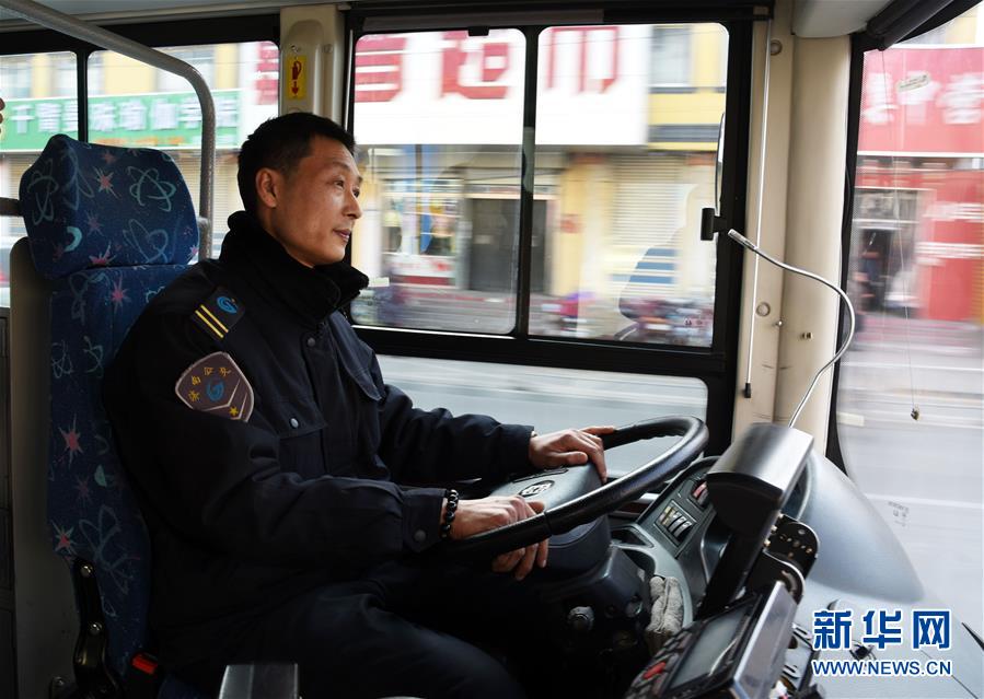 1月27日,陈明强驾驶813路公交车往返于村镇之间。新华社记者 王凯 摄