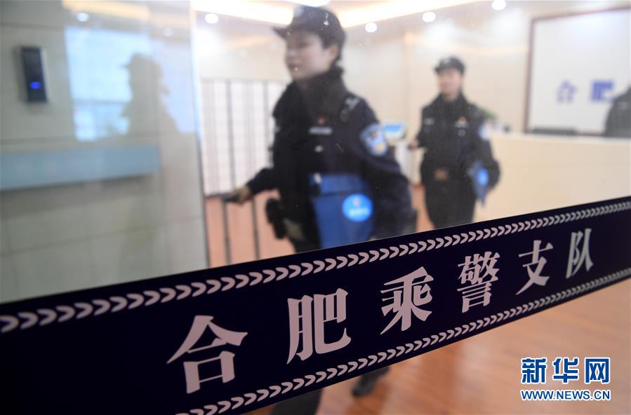 1月29日,合肥铁路公安处乘警支队女警谢肖鹏(左)、周丹琳出发值乘。 新华社记者刘军喜摄