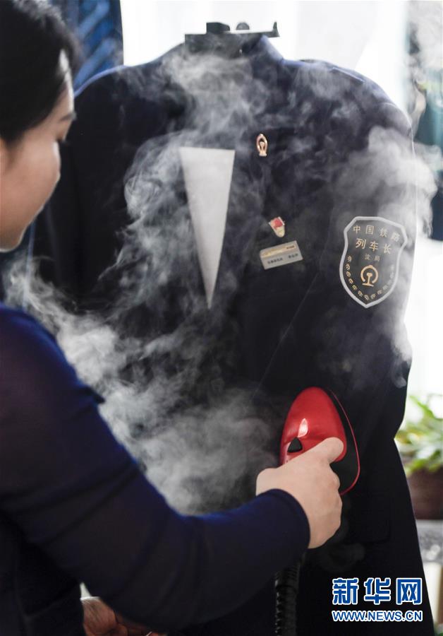 1月28日,李长明的妻子陈松在家中为他熨烫制服。 新华社记者 许畅 摄