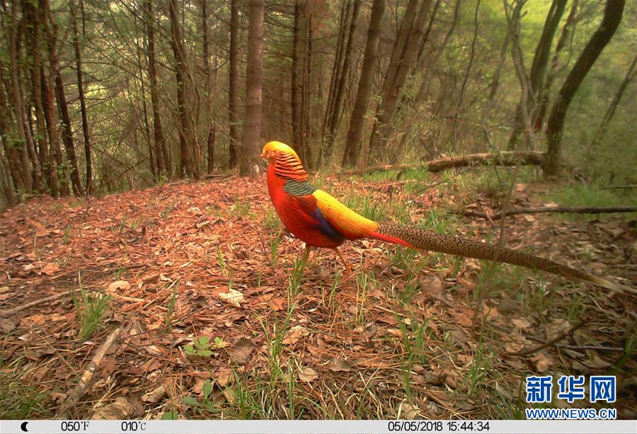 这是在保护区内布设的红外相机拍摄的红腹锦鸡活动影像(2018年5月5日摄)。 近日,甘肃白水江国家级自然保护区工作人员在整理2018年全年红外相机资料时,发现包括野生大熊猫、羚牛、金丝猴等多种野生动物频繁出没的影像。据介绍,2018年,该保护区共布设红外相机700台(次),收回各类野生动物有效红外视频8350多段、照片15800多张,通过分析研究监测影像,基本掌握了野生大熊猫等珍稀动物活动情况和种群分布状况,野生动物种群相比2017年呈现稳中有升的态势。 新华社发