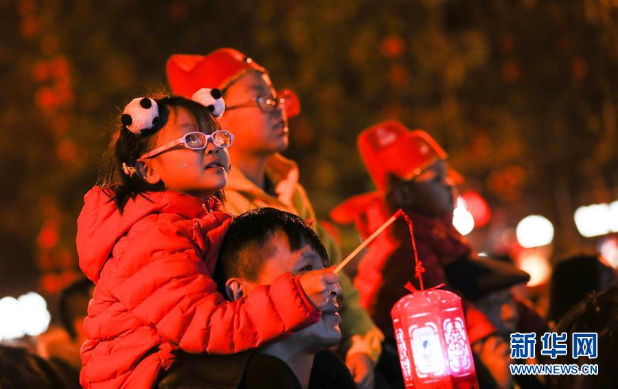 2月3日,在武侯祠成都大庙会上,小朋友和家长一起观看文艺表演。 当日,2019武侯祠成都大庙会在四川成都拉开帷幕。庙会将为市民和游客提供主题灯会、文艺表演、文化展览、非遗集市、特色小吃、游园体验等活动。 新华社记者 江宏景 摄