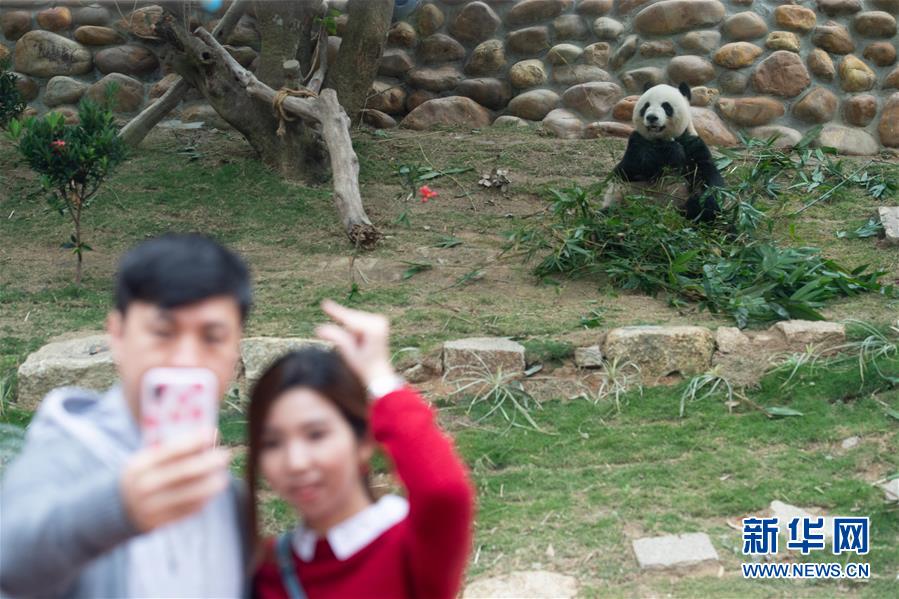2月5日,大熊猫“心心”在吃竹子。 2月5日至10日,澳门市政署举办“开心健康来拜年”活动,期间澳门大熊猫馆免费对公众开放。新华社记者 张金加 摄