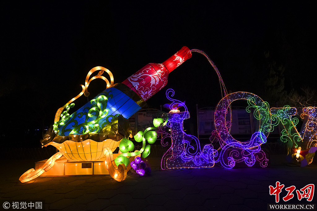 2019年2月7日,北京世界公园以“炫彩新世界 邀你过大年”为主题的春节灯光节,用35000枝郁金香花,玫瑰花灯组成奇幻花海,在夜幕下点亮世界公园,让游客沉浸在奇妙的世界。图片作者:张志春
