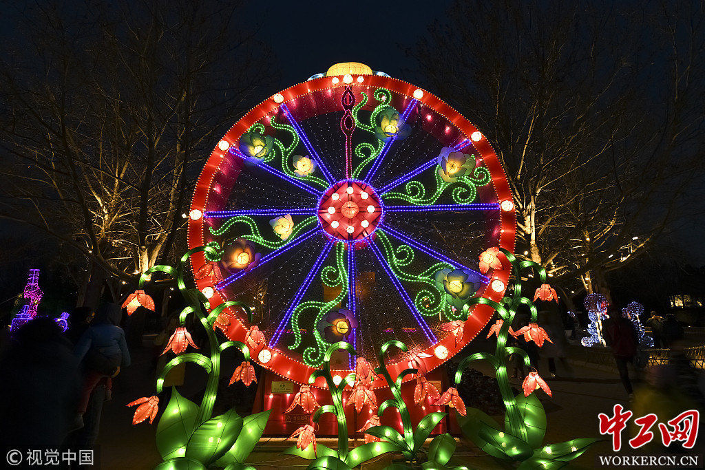2019年2月7日,北京世界公园以“炫彩新世界 邀你过大年”为主题的春节灯光节,用35000枝郁金香花,玫瑰花灯组成奇幻花海,在夜幕下点亮世界公园,让游客沉浸在奇妙的世界。图片作者:张志春