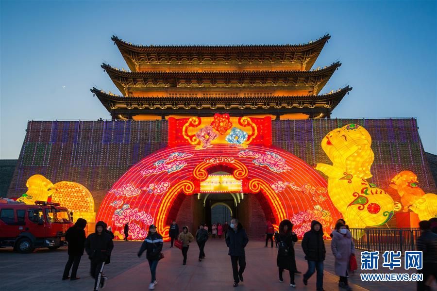 2月8日,游客在山西大同欣赏古都灯会。新华社发(张伟 摄)
