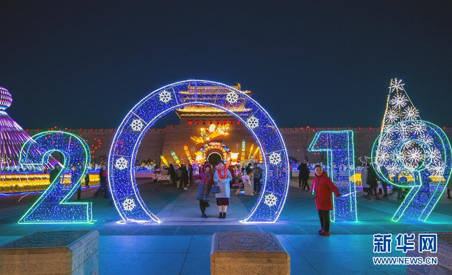 2月8日,游客在山西大同欣赏古都灯会。新华社发(张伟 摄)