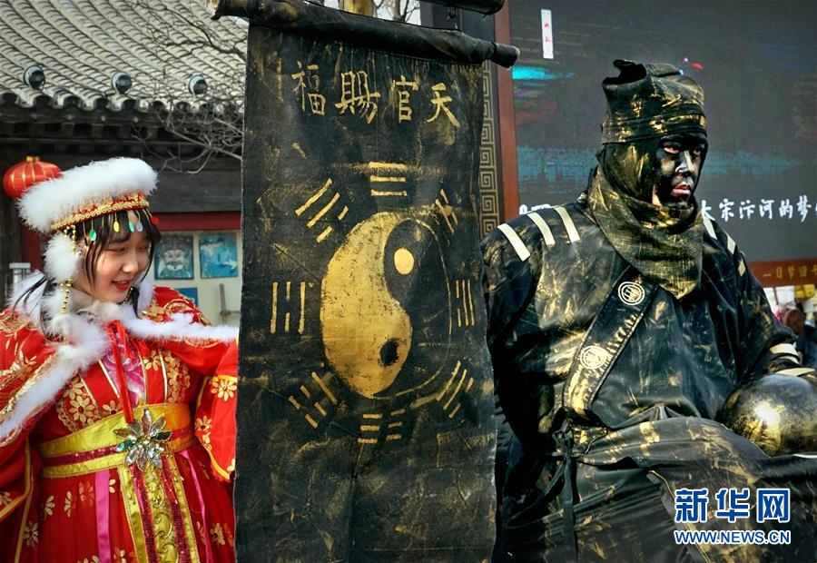 游客在河南省开封市清明上河园内拍照留念(2月7日摄)。新华社记者李安摄