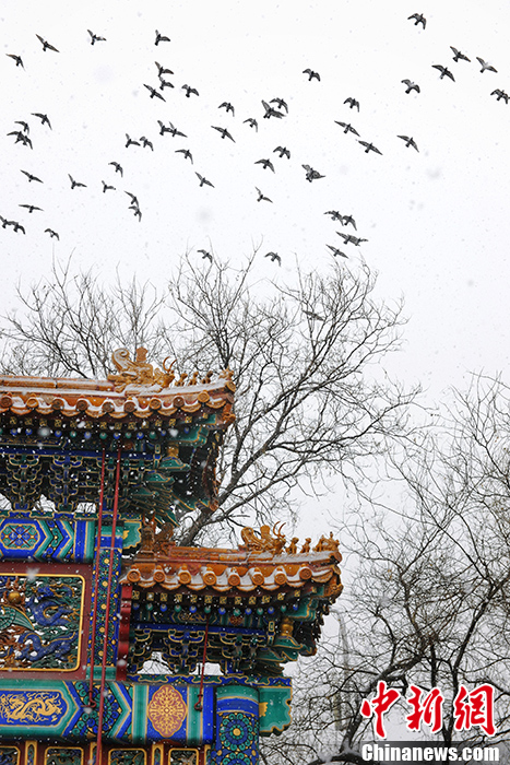 朱楼向晓帘开,六花片片飞来。中新网记者 李霈韵 摄